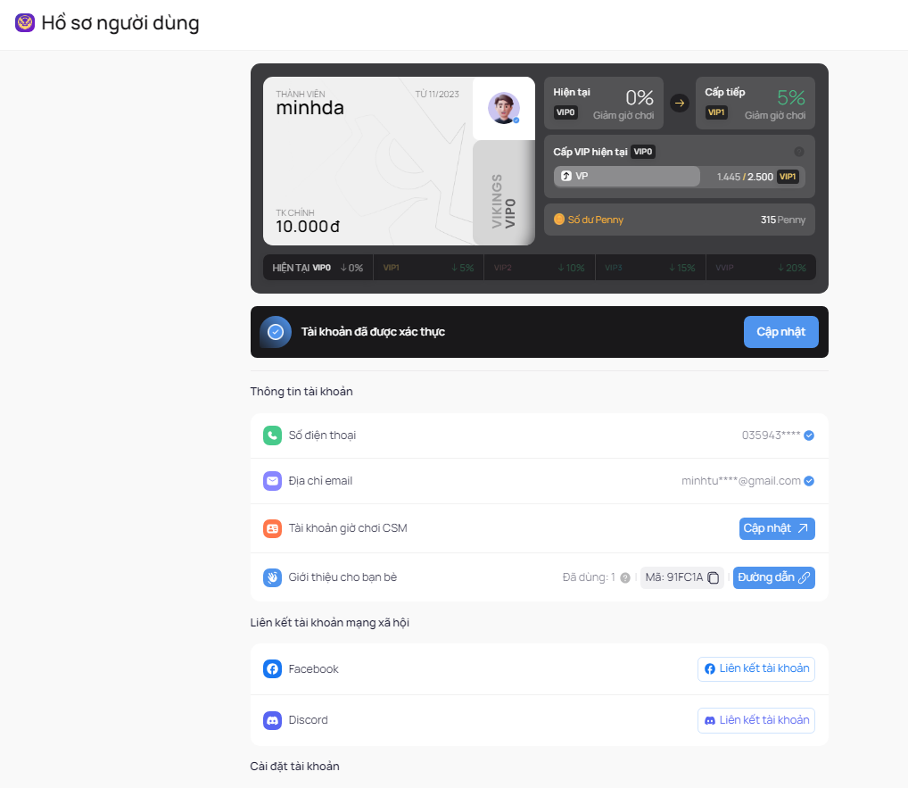 Đăng nhập trên website Vikings ID tại [đây](https://id.vikingscyber.com/Account/Login).